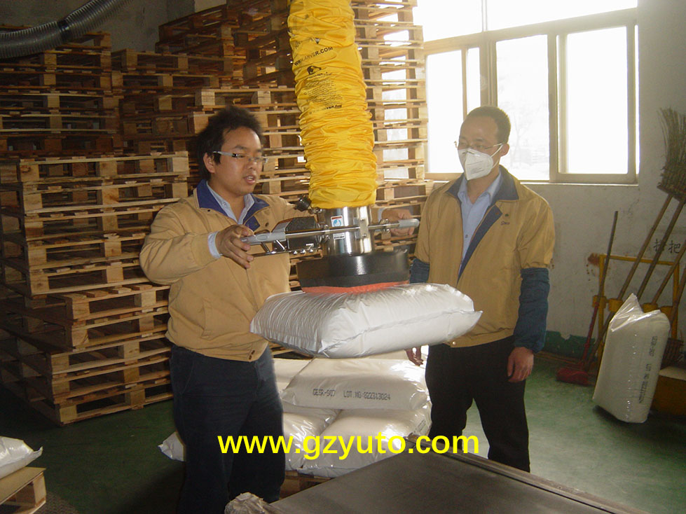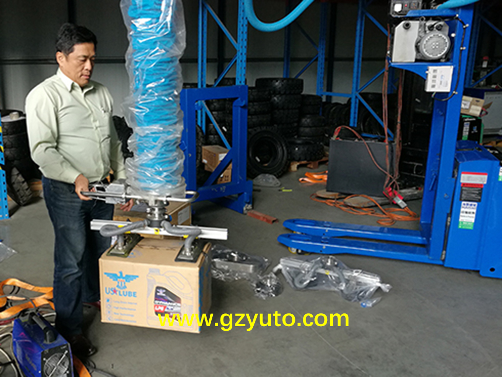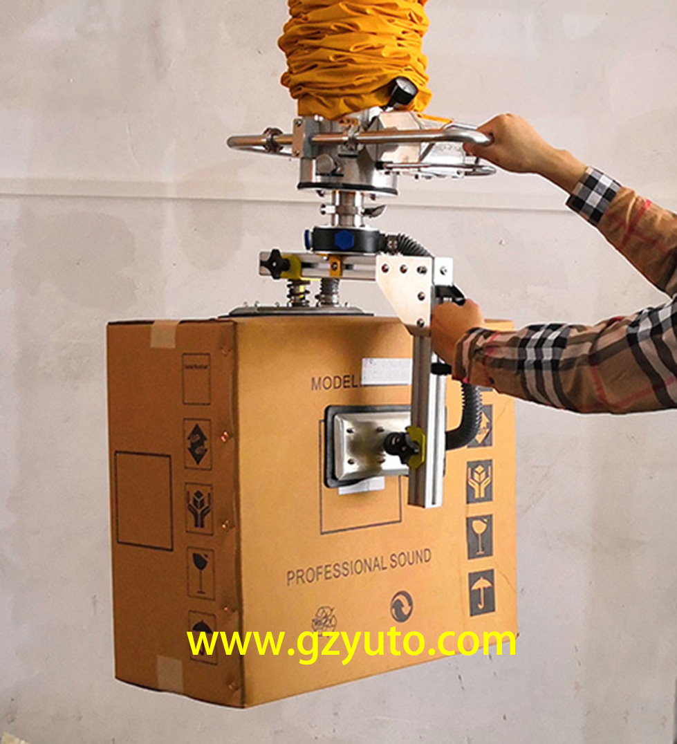 該設(shè)備通過真空吸盤來吸附物體, 吸住、上升、下降和釋放物體僅靠單手操作即可, 不需要任何其他外力。 用真空吸盤吸附物體比用吊鉤或者夾具的優(yōu)點在于不必擔(dān)心吸盤損壞產(chǎn)品的表面或者邊緣。