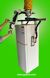 對于頂部強(qiáng)度不夠或者頂部有開口的物體,比如石英坩堝、冰箱和單缸洗衣機(jī)等產(chǎn)品, 傳統(tǒng)的從頂部用吸盤來吸附的搬運(yùn)方式就沒有了用武之地。新型側(cè)吸式真空搬運(yùn)機(jī)采用從兩側(cè)用吸盤來吸的方式, 成功地解決了這一搬運(yùn)難題。