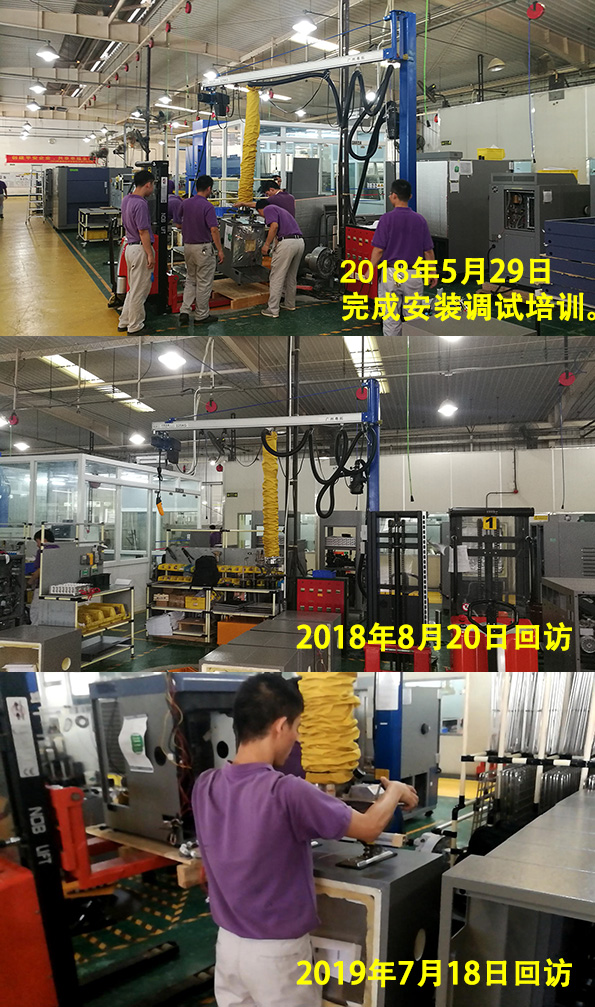 2018年5月 廣州五所(GWS)首次采購了我們的一臺真空吸吊機(jī), 用來搬運生產(chǎn)線上50公斤重的設(shè)備。 在成功交付使用后, 我們一直密切跟蹤設(shè)備使用狀態(tài), 認(rèn)真做好售后服務(wù)。 經(jīng)過一年的使用, 設(shè)備狀態(tài)完好率100%。 獲得了客戶高度認(rèn)可, 并由此開啟了持續(xù)合作的新篇章。