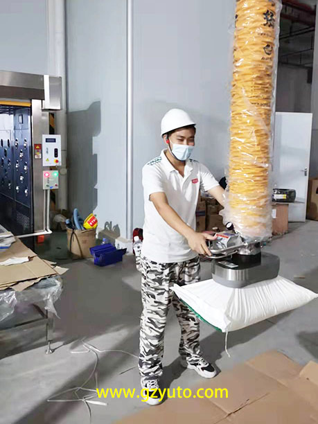 廣州粵拓提供了全部由304材質(zhì)制成的、符合食品衛(wèi)生標(biāo)準(zhǔn)的、能夠以最快速度搬運(yùn)50KG蔗糖編織袋的真空吸吊機(jī)。 我們已經(jīng)為眾多食品行業(yè)的著名公司提供過類似設(shè)備, 包括位于香港元朗的雀巢牛奶、 吉百利、明治雪糕和華僑糖廠等等。