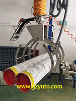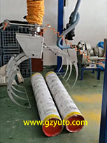 搬運機配有專門設(shè)計的布卷夾具, 可搬運重量90公斤、幅寬2米、 最大直徑600毫米的各類布卷、紙卷、塑料卷、金屬管等等各類圓筒狀物體。 終端夾具依靠壓縮空氣動力, 控制閥可控制夾爪張開和夾緊, 速度可調(diào)。